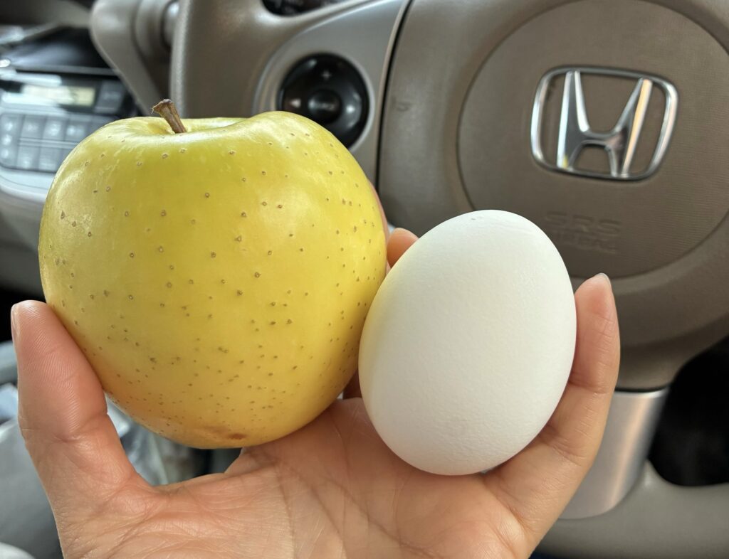 黄色いりんごとゆで卵です。